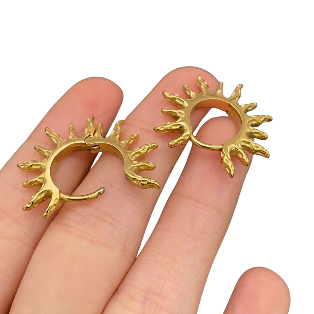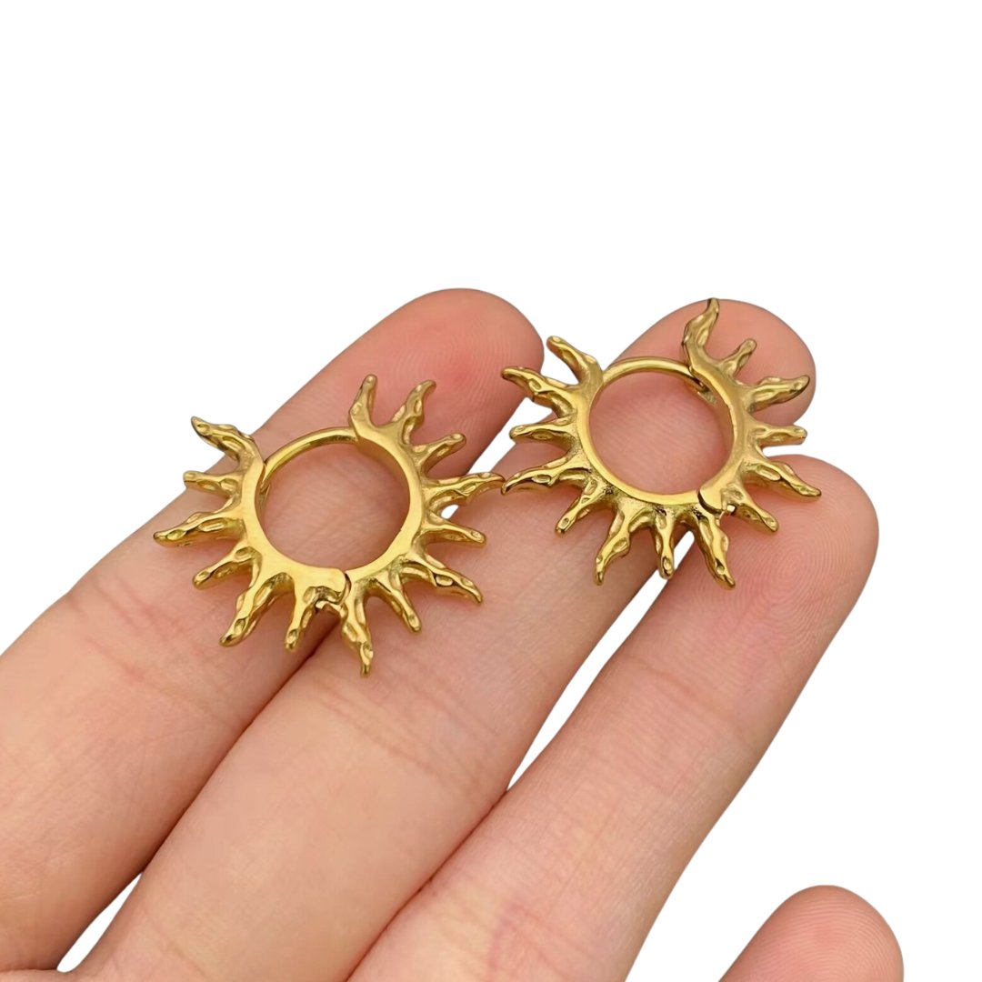 18K Gold Plated Stainless Steel Sun Huggie Earrings