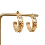 Embossed Star Moon Sun 18K Gold Plated Hoop Earrings