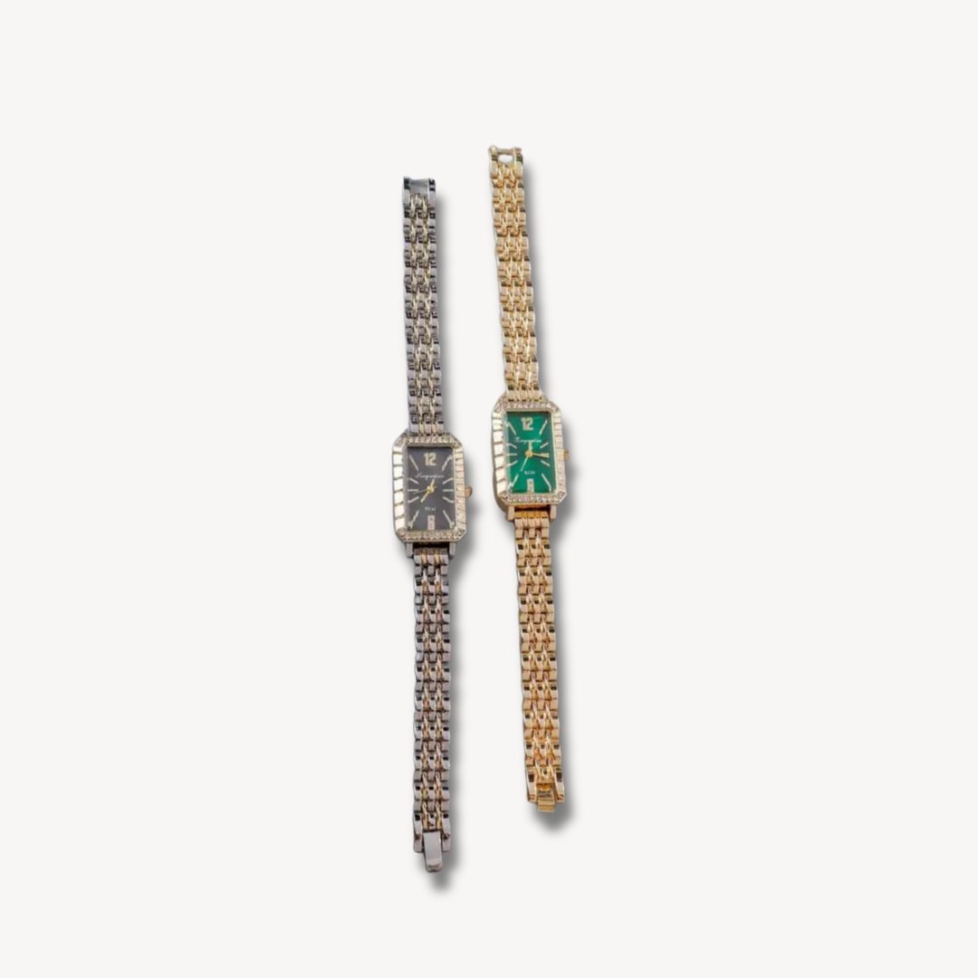 Available in gold-tone with green dial & silver tone and black dial.